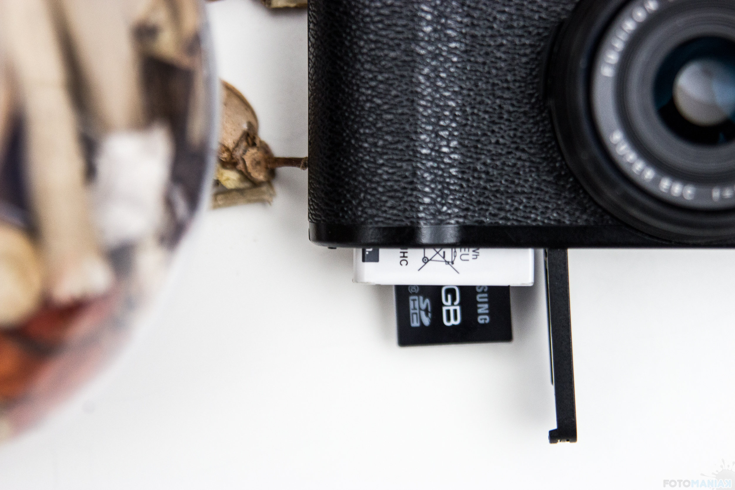 Sama bateria mieści się w kieszeni na spodzie aparatu (gdzie znalazł się też slot na karty SD). Jej żywotność szacuję na ok. 350 zdjęć przy ograniczonym korzystaniu z Wi-Fi. Producent, powołując się na testy CIPA, podaje wartość równą 320 klatkom.
