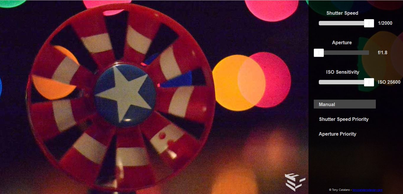 Korzystać z narzędzia możemy wchodząc na jego stronę internetową. Na pomysł stworzenia symulatora wpadł fotograf Tony Catalano. A jego założenia są bardzo proste – możemy „bawić się” ustawieniami ekspozycji zdjęcia – ustawiać różne wartości przysłony, migawki oraz ISO i zobaczyć, jakie efekty uzyskamy. Do tego, możemy zobaczyć, czym różni się tryb manualny od trybu z priorytetem migawki, czy priorytetem przysłony. Oto, jak prezentuje się okno symulatora.