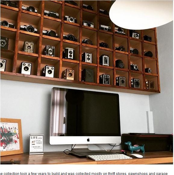 Żeby móc pochwalić się swoją kolekcją, fotograf zaprojektował specjalną półkę, która będzie w stanie pomieścić całe zbiory. Półkę z kolei zbudował jeden z krewnych fotografa. Aparaty pochodzą z bardzo różnych okresów. Na dole Marco umieścił najstarsze modele, a z kolei na górze te najnowsze, pochodzące już z lat osiemdziesiątych. Oprócz popularnych modeli są tu też perełki. Najstarsze modele pochodzą z początku ubiegłego wieku, a wśród nich między innymi kilka kultowych aparatów „Brownie” produkowanych przez Eastman Kodak.