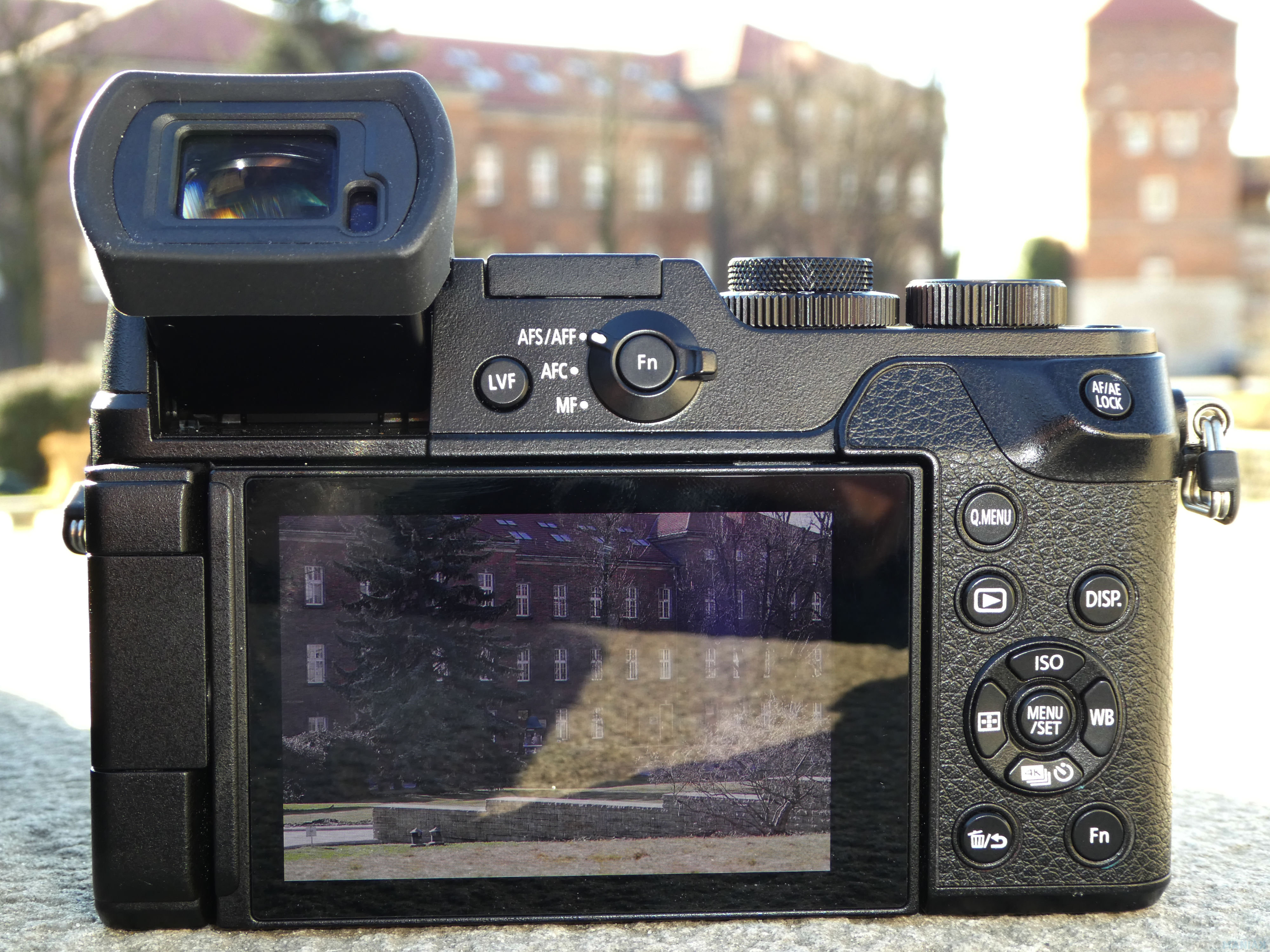 Jakość podglądu nie zaskakuje. Dostajemy wyświetlacz OLED o rozdzielczości 1040 tys. punktów punktów – podgląd jest bardzo wyraźny. Jak już wspominałem, ekran uchyla się do boku, tak jak w kamerach, i pozwala na obrót o 180 stopni. Trzeba tutaj również wspomnieć o obecności panelu dotykowego. Na ekranie podglądu dostępnych jest sporo funkcji i ze wszystkich możemy korzystać właśnie przy pomocy dotyku.
