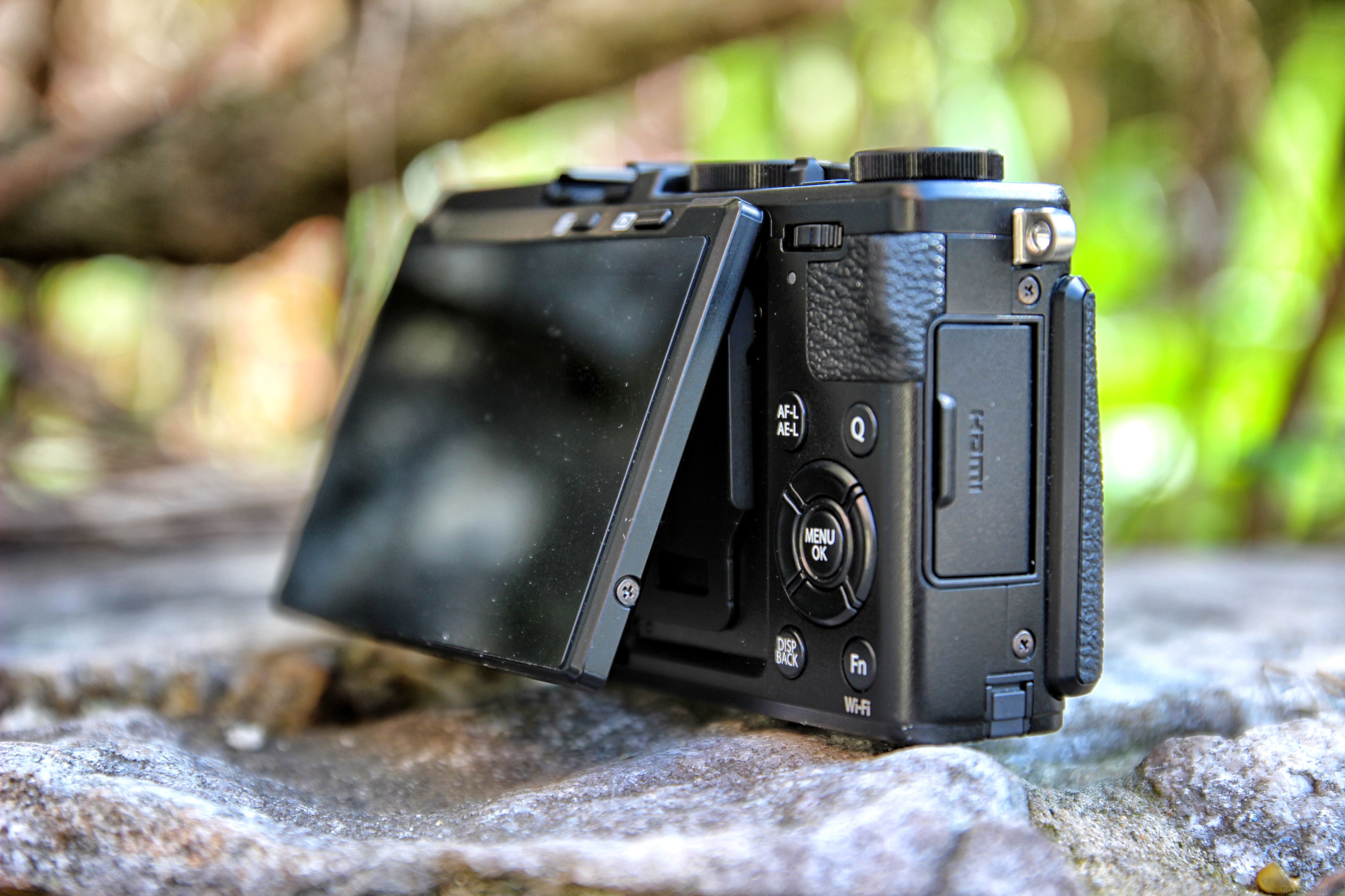 Mimo swojej „analogowości” (to chyba słowo przewodnie naszego testu…), aparat idzie z duchem czasu. Dlatego wyświetlacz jest odchylany o 180 stopni, co pozwala na robienie zdjęć „selfie”, ale też wyposażony został w dotyk. Za jego pomocą możemy między innymi ustawiać punkt ostrości, a także wybierać różne ustawienia bez konieczności zaglądania do menu.