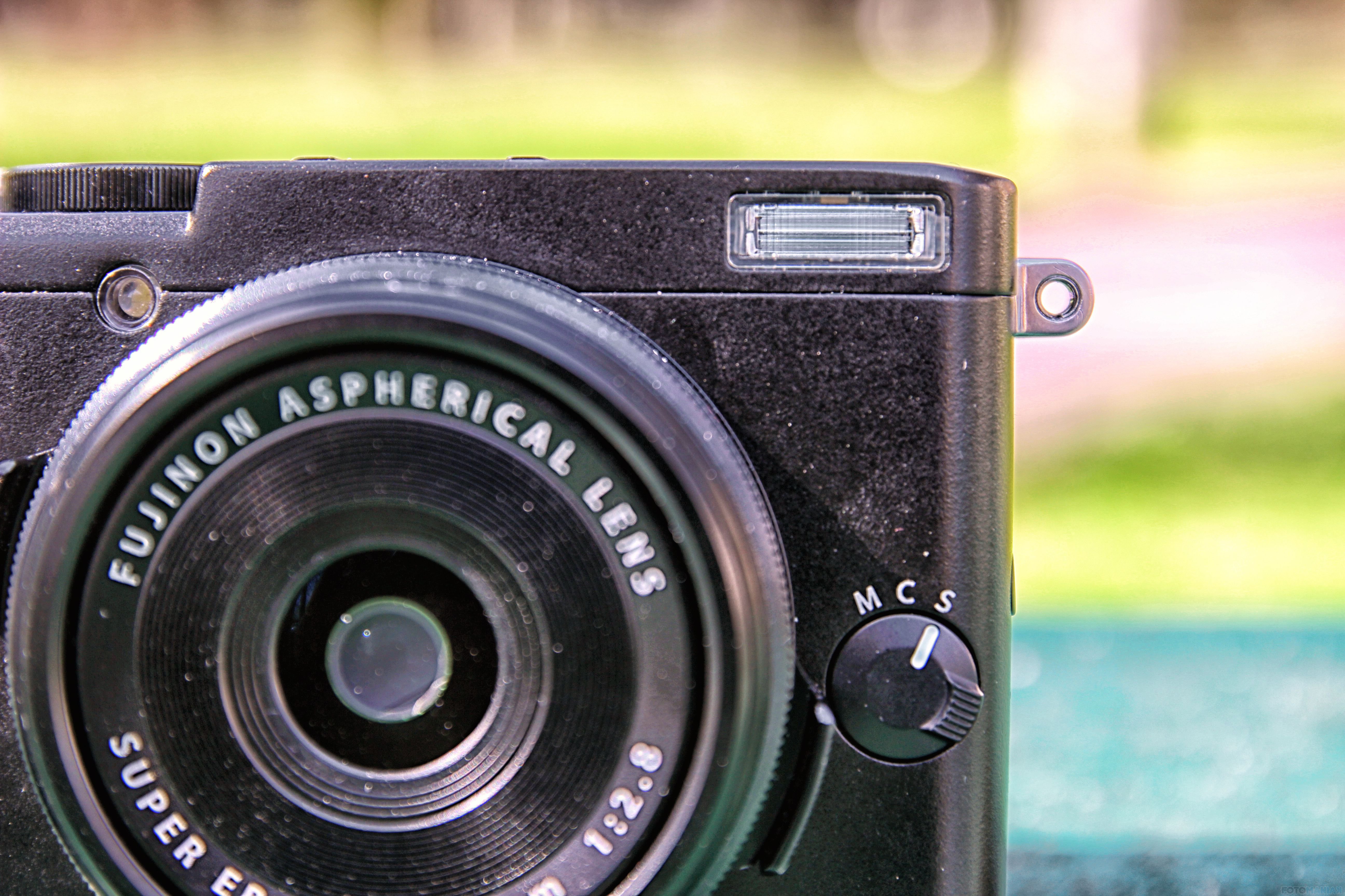 Ale elementów retro jest w aparacie znacznie więcej. Nawet dekiel na obiektyw nie jest typowo plastikowy, ale wykonany został z lepszego materiału, a od środka wyłożony jest gąbką. Trzeba przyznać, że Fuji naprawdę do perfekcji opanował styl retro w swoich modelach. I w przeciwieństwie do innych producentów, nie, ale i funkcjonalność nawiązują do klasycznych modeli. W aparacie nie zabrakło jednak tego, co dziś jest koniecznością, jak na przykład wbudowana lampa błyskowa. Z jej pomocą możemy doświetlić plan do 7,9 m, co jest niezłym wynikiem, jak na jej małe rozmiary, a światło lampy ładnie zarysuje obiekty na zdjęciach.