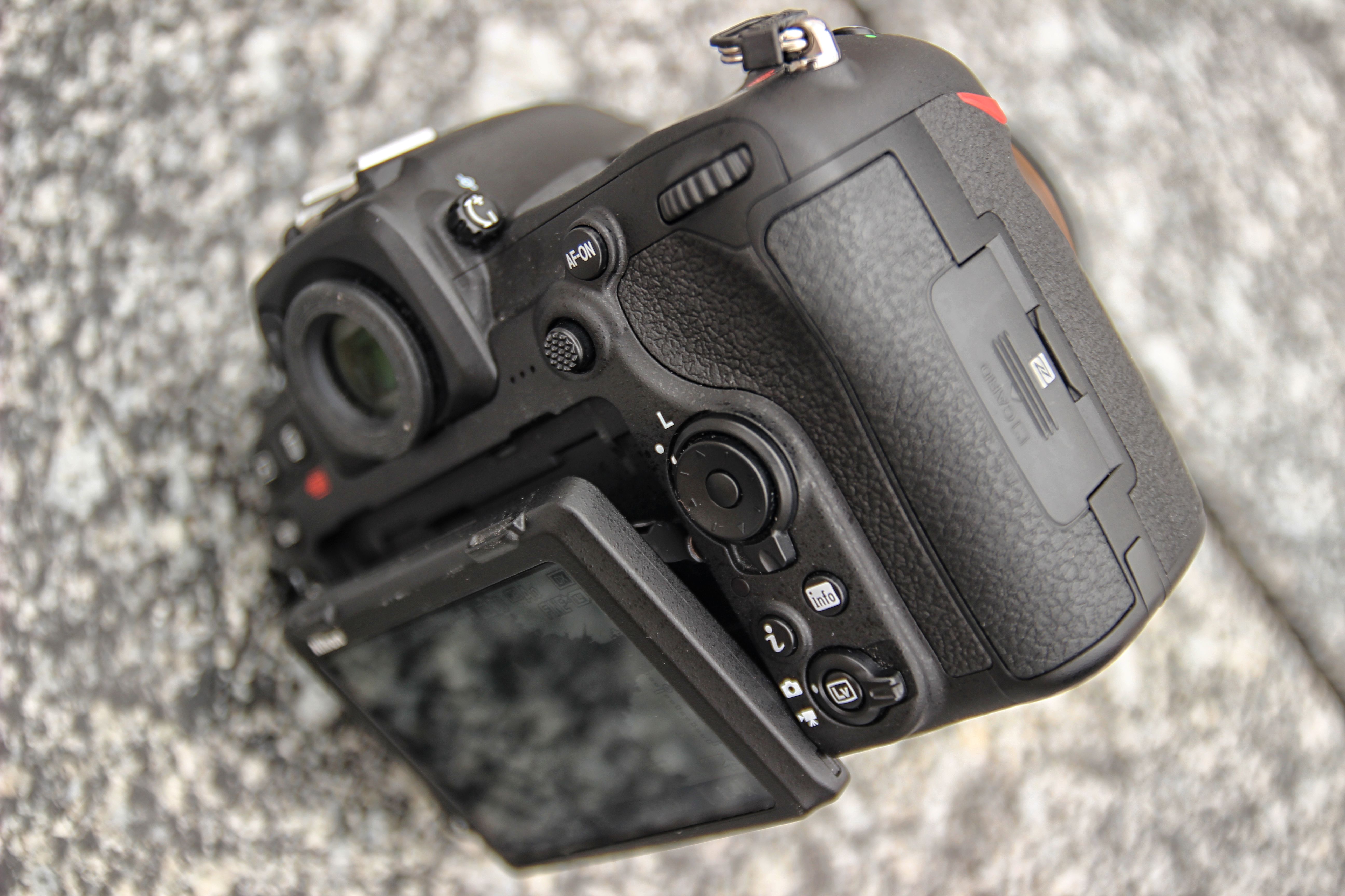 Ekran, co ciekawe, obsługuje dotyk. Ciekawe, bo w lustrzankach, zwłaszcza tych profesjonalnych, nie jest to często spotykane rozwiązanie, a w Nikonie okazuje się bardzo przydatne chociażby ze względu na możliwość ustawiania dotykiem punktu ostrości. No i co najważniejsze – ekran jest odchylany o 90 stopni. To szalenie przydatne, gdy przyjdzie nam fotografować na przykład z perspektywy żaby.