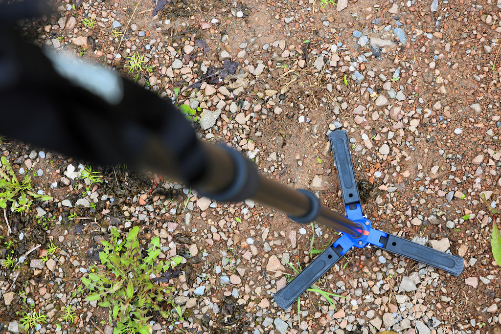 Nóżki pozwalają odchylić monopod od pionu o około 45 stopni – przy takim kącie nadal stabilnie trzymają się podłoża. Możemy więc zmieniać kąt widzenia podczas panoramowania, co jest bardzo przydatne, a bez nóżek nie byłoby możliwe. Gdy zablokujemy głowicę kulową, nie możemy poruszać monopodem, a cała konstrukcja nabiera większej stabilności. Takie rozwiązanie przydatne będzie wtedy, gdy nie potrzebujemy panoramować, a chcemy tylko stabilnego kadru jak ze statywu – na przykład gdy korzystamy z teleobiektywu. W takiej konfiguracji monopod będzie w stanie nawet sam utrzymać aparat w pionie, choć oczywiście nie radzę ryzykować sprawdzenia tego, bo najmniejszy podmuch wiatru może go przewrócić.
