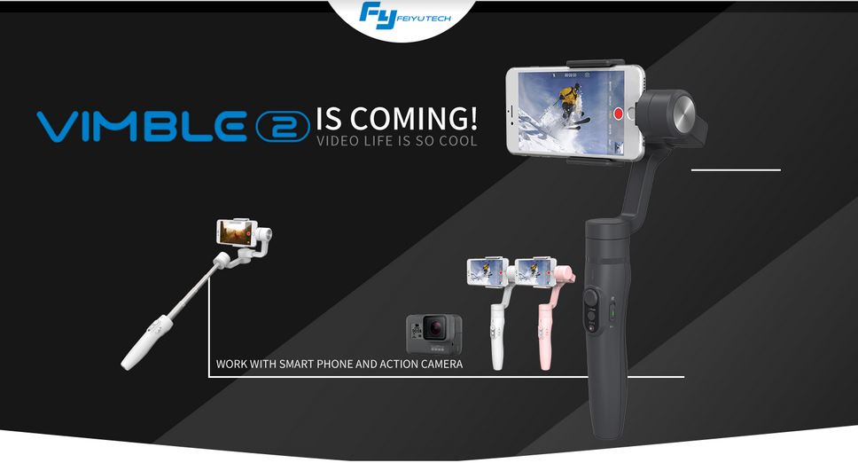 Na targach CES 2018 FeiyuTech zaprezentował dwa nowe modele gimbali. FeiyuTech VIMBLE 2 przeznaczony jest dla smartfonów, natomiast FeiyuTech G5 GS to gimbal dedykowany kamerom sportowym.