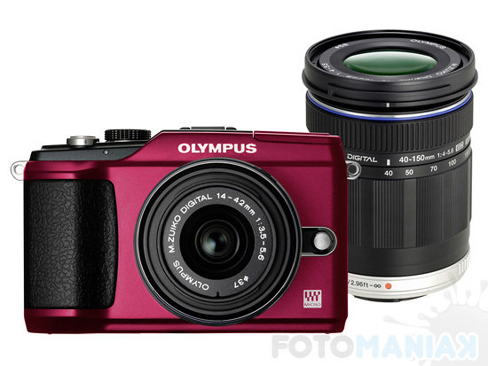 - Zestaw E-PL2 z podwójnym zoomem (DZK)obejmujący obiektywy M.ZUIKO DIGITAL ED 14–42mm 1:3.5–5.6 II oraz M.ZUIKO DIGITAL ED 40–150mm 1:4.0–5.6,