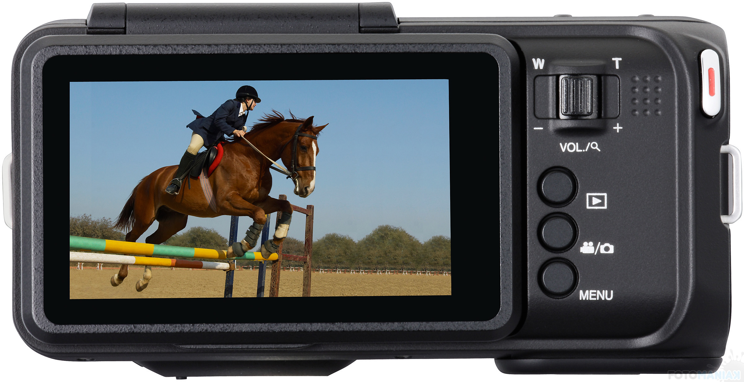 Urządzenie powstało na bazie czujnika BSI CMOS, o typowym dla kompaktów rozmiarze 1/2,3 cala. Oferuje rozdzielczość rzędu 12 megapikseli i użyteczny zakres czułości ISO 100 – 6.400. Producent wykorzystał optykę marki Konica Minolta, pozwalającą na 10-krotne zbliżenie (w przeliczeniu na 35 mm: 37,4 – 374 mm dla zdjęć i 43,3 – 433 mm dla filmów). Obiektyw charakteryzuje się dobrą światłosiłą (F2,8 – 4,5) i jest wspomagany stabilizacją obrazu. Ponadto na pokładzie znajdziemy uchylny, dotykowy ekran LCD (3-calowy, 230.000 punktów), gniazdo kart SDXC oraz wbudowaną pamięć o pojemności 32 gigabajtów. Wszystkie podzespoły zamknięto w nietypowej obudowie, o wymiarach 131 x 67 x 122 mm. Urządzenie ma wagę zbliżoną do większości amatorskich lustrzanek – przeszło 0,5 kg.