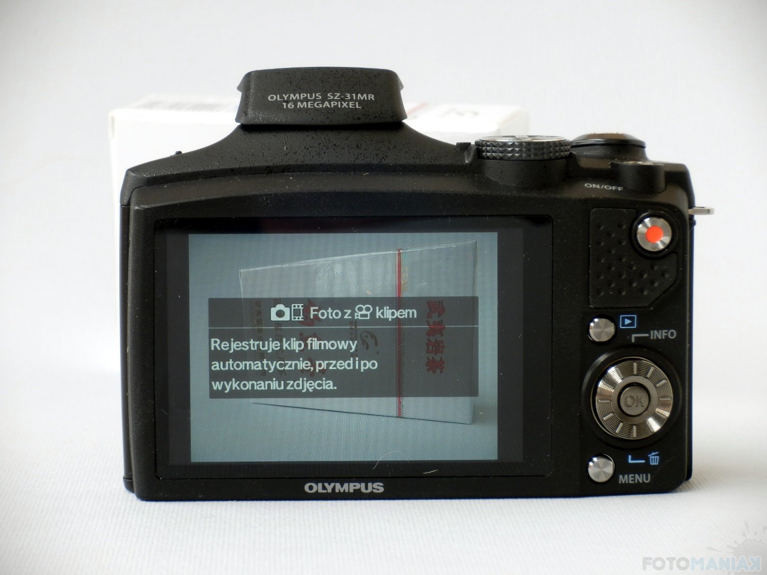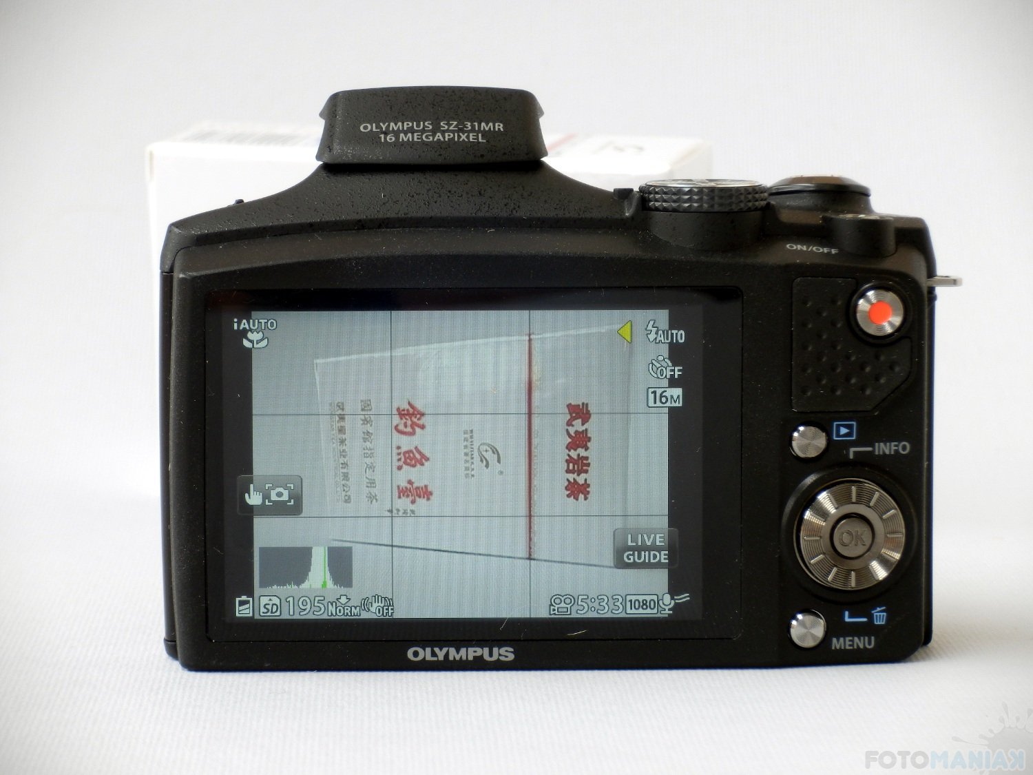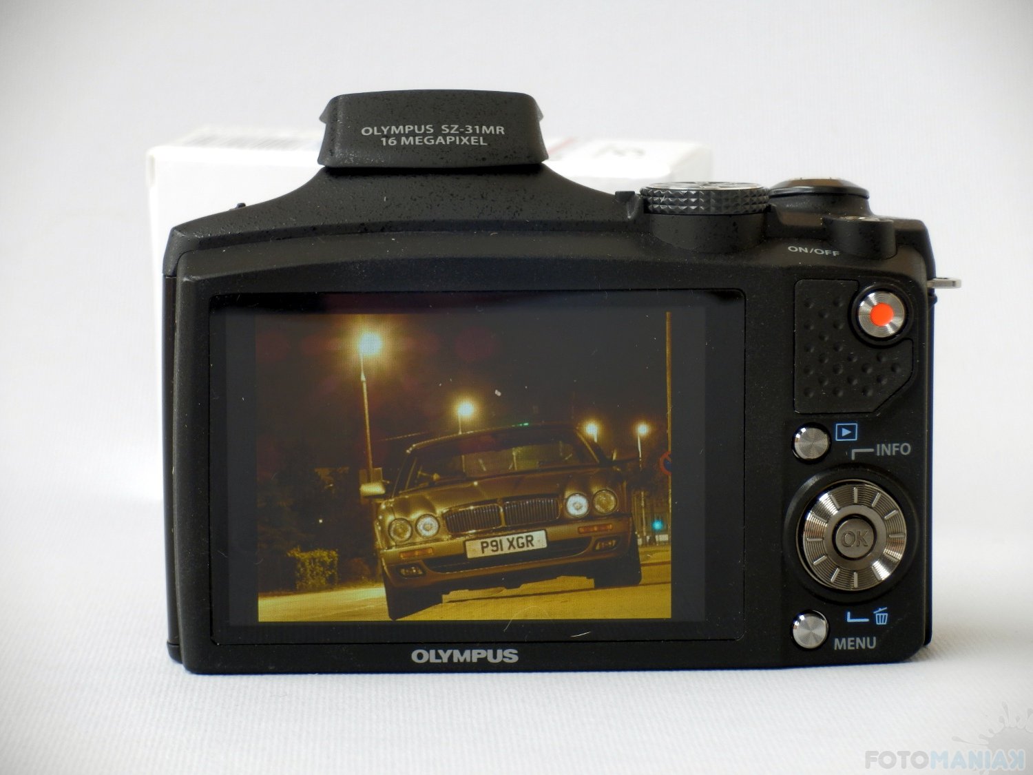 Na pokładzie Olympusa SZ-31MR znajdziemy przejrzysty, duży wyświetlacz LCD. Charakteryzuje się przekątną 3 cali i podwyższoną rozdzielczością 920 tys. pikseli. Wyświetlany na nim obraz jest pozbawiony jakichkolwiek zauważalnych defektów. Niestety w ostrym słońcu staje się nieczytelny, jako że tafla ochronna mocno przyciąga refleksy.