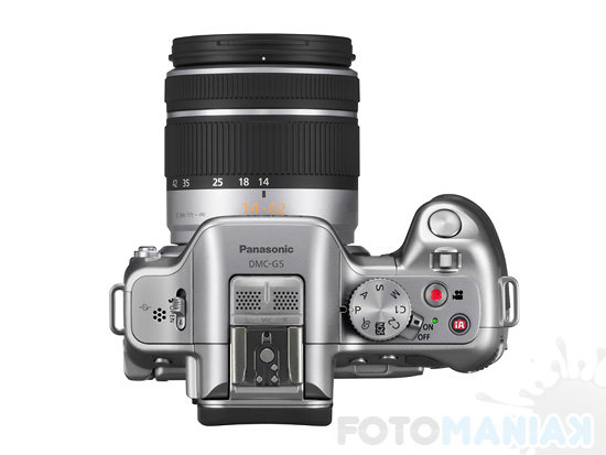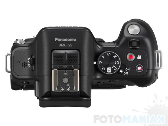 Aparat został wyposażony w elektroniczny wizjer, o rozdzielczości 1.440.000 punktów. Pokrycie kadru jest oczywiście stuprocentowe, a korekta dioptrii obejmuje zakres +/-4 punktów. Pod ciemnym prostokątem poniżej wizjera kryje się czujnik zbliżeniowy odpowiadający za wygaszanie i włączanie ekranu dotykowego. Panasonic Lumix DMC-G5 oferuje ponadto dostęp do mikrofonu stereofonicznego, złącza gorącej stopki oraz lampy błyskowej typu pop-up uzbrojonej w ręczny spust. Za zasilanie odpowiada akumulator litowo jonowy, tradycyjnie schowany wraz z kartą pamięci w gripie.