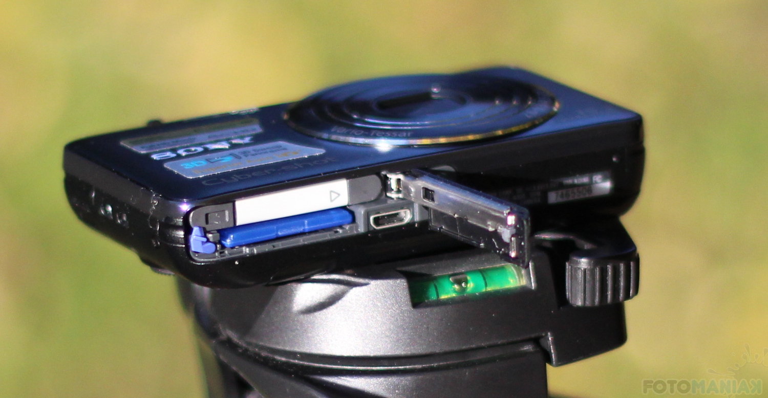 Na prawej bocznej belce znajdziemy niewielką niszę z przekładką, na której zawiążemy sznurek. Przy górnym narożu po tej samej stronie ulokowano port mini-HDMI, ukryty pod plastikową zaślepką. Na górnym panelu umieszczono dwa mikrofony zbierające dźwięk w trybie stereo. Komora baterii i karty pamięci jest bardzo wąska. Stanowczo zbyt łatwo ją otworzyć, co może stanowić problem podczas fotografowania. Wątpliwości budzi również całkowicie odkryty, niezabezpieczony port micro-USB dedykowany zarówno komunikacji z komputerem, jak i zasilaniu.