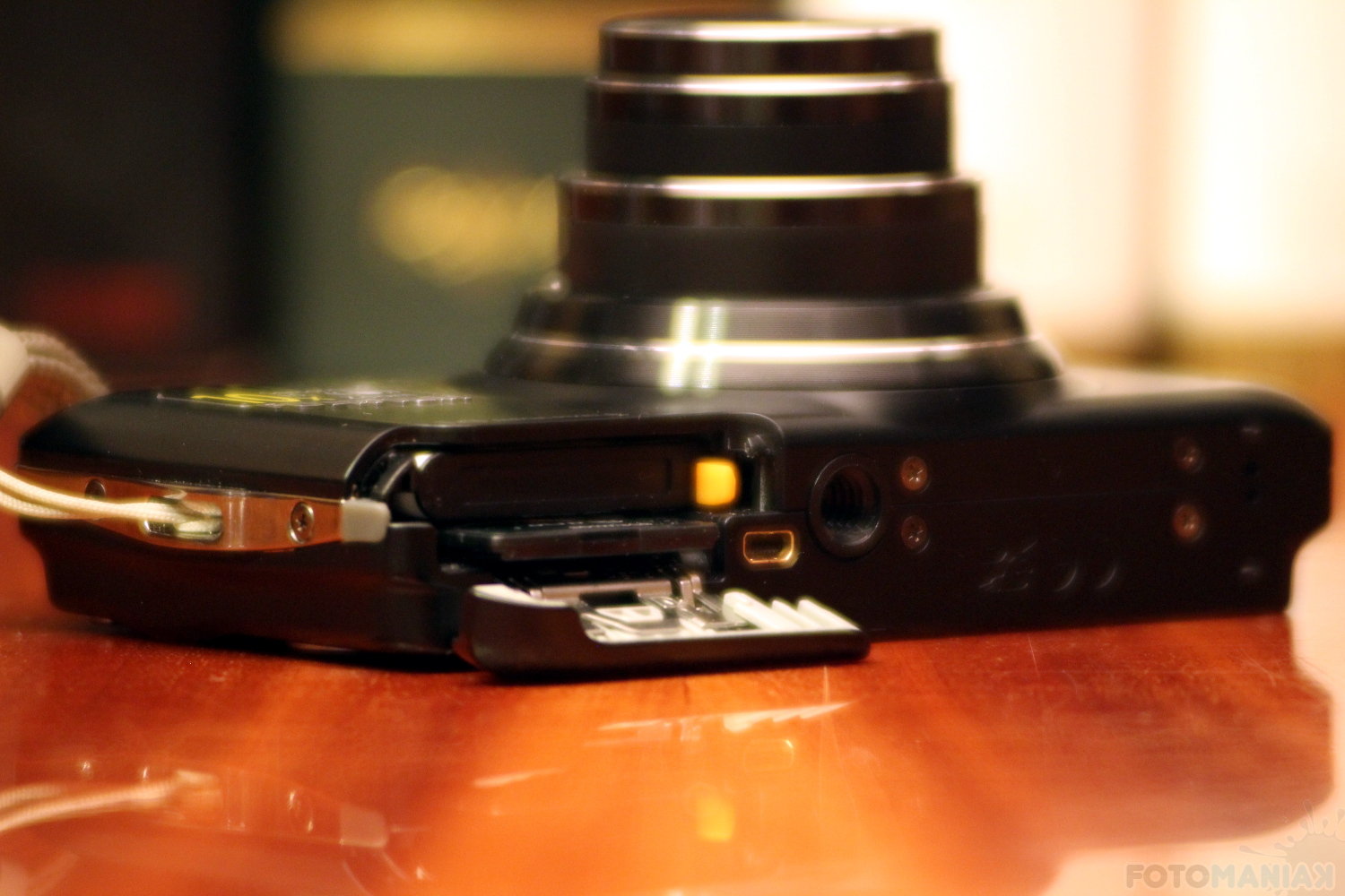 Na pokładzie aparatu znajdziemy mikrofon ulokowany na frontowym panelu, niedaleko bocznej krawędzi. Nie zabraknie również głośnika, który projektanci przesunęli na spód aparatu. Komora baterii oraz slot kart SD/SDHC są ukryte za nietypową, ale spełniającą swoją rolę zaślepką. Warto zanotować, że port miniUSB łączący kompakt z ładowarką i komputerem jest całkowicie odkryty, a tym samym narażony na uszkodzenia mechaniczne i zabrudzenia. Wbudowana lampa błyskowa charakteryzuje się dobrą mocą. Doświetli obiekty znajdujące się w odległości 4,5 metrów od aparatu.