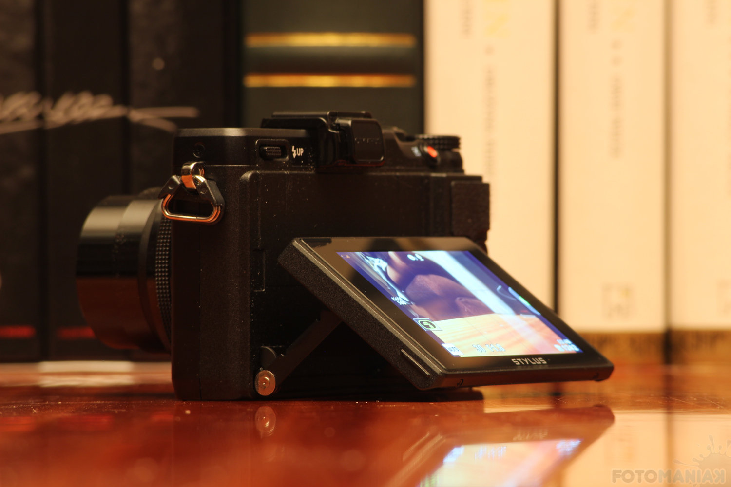Olympus XZ-2 został „uzbrojony” w ekran, który z pewnością przypadnie większości użytkowników do gustu. Duży, dotykowy, 3-calowy wyświetlacz został zamocowany na dwuczęściowych szynach umożliwiających odchylenie ekranu w górę i w dół. Mechanizm jest solidny i nie grozi szybkim zużyciem. Na szczycie ramki okalającej ekran znajdziemy specjalnie wyprofilowane punkty, które ułatwią odchylanie.
