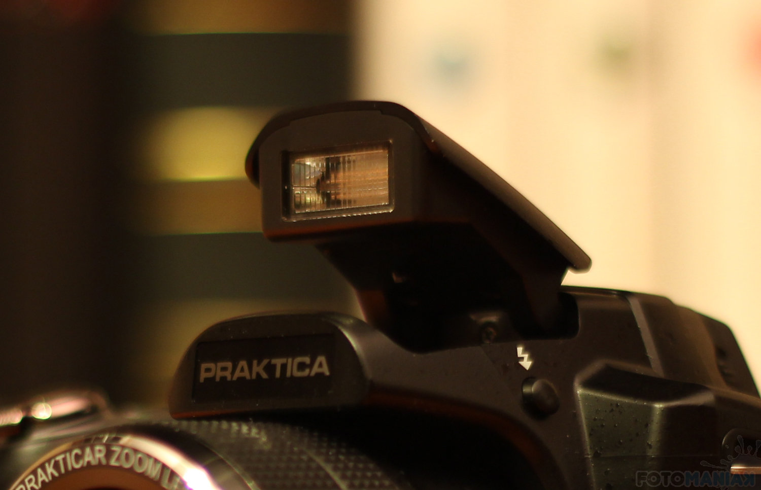 Aparat został uzbrojony w lampę błyskową typu pop-up. Została zamocowana na prostym zawiasie, którego spust znajdziemy po lewej stronie flesza. Lampa charakteryzuje się przeciętną mocą. Doświetli obiekty znajdujące się w zasięgu 0,5 – 6 metrów od aparatu, przy szerokim kącie. Z pewnością przyda się przy zdjęciach grupowych po zmroku. Na pokładzie nie znajdziemy złącza gorącej stopki, co z miejsca eliminuje możliwość podłączenia zewnętrznego flesza.