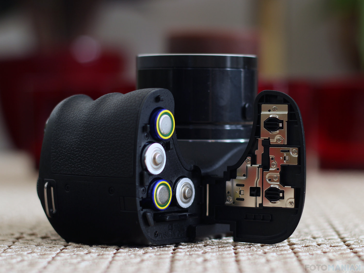 Aparat zasilany jest z pomocą zestawu czterech baterii typu AA. Producent dołącza do zestawu cztery sztuki, które w trakcie testów podtrzymały pracę kompaktu przez około 360 zdjęć, co jest wynikiem godnym odnotowania. Pojemne akumulatorki wydłużą ten czas nawet do 500 zdjęć na jednym ładowaniu.