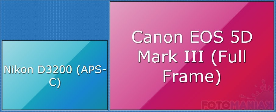 Porównanie wielkości matryc popularnych lustrzanek. Po lewej przedstawiciel APS-C, Nikon D3200, po prawej - pełnoklatkowy Canon EOS 5D Mark III / fot. za cameraimagesensor.com