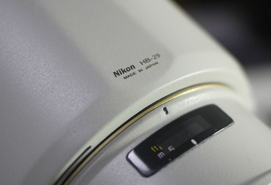 Specjaliści z Tajwanu poradzili sobie nawet z tak specyficznym elementem, jakim jest plakietka z oznaczeniami. Metal został odświeżony, położono na nim nowy, złoty i wyszczotkowany później lakier, a wszystkie wyżłobienia delikatnie wypełniano lakierem czarnym. Nawet poszczególne czcionki na obiektywie i osłonie przeciwsłonecznej wyglądają perfekcyjnie.