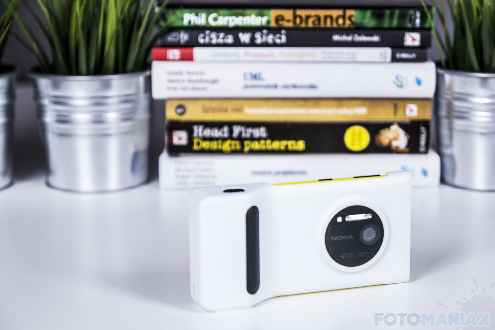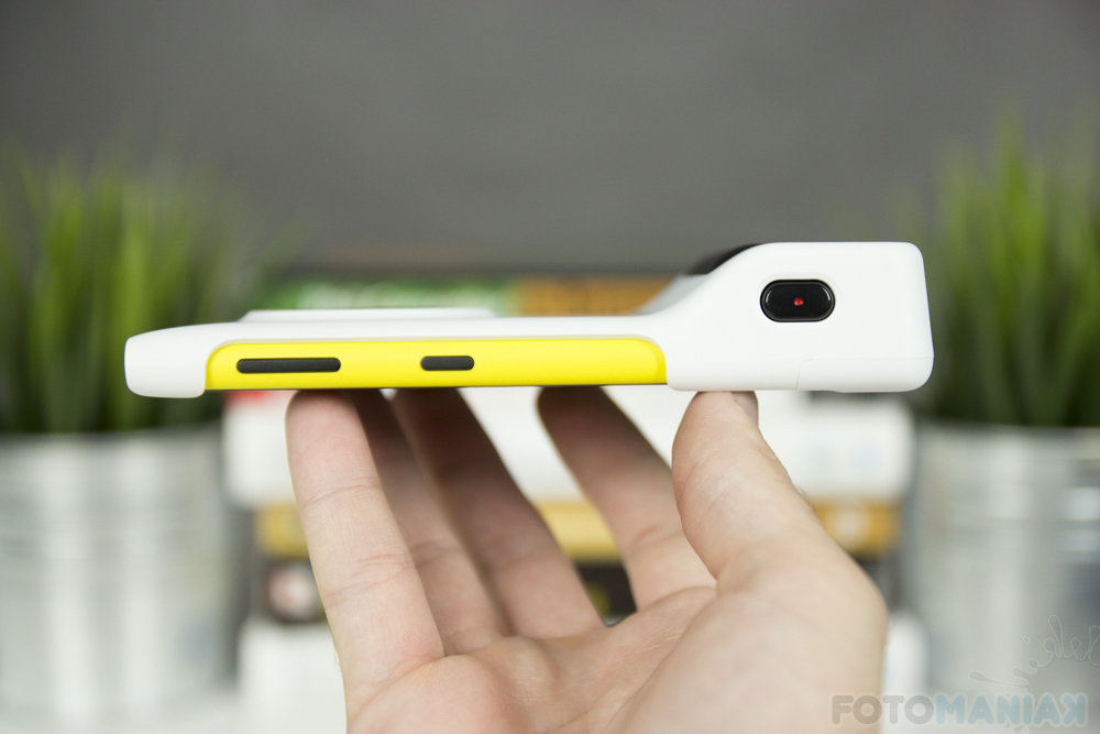O ile nad szczegółowym opisem konstrukcji Lumii jako telefonu skupię się przy okazji testu samego smartfona, tak nie sposób opisać funkcjonalności przyczyniających się do zwiększenia komfortu fotografowania. Po pierwsze, przycisk widniejący na dole, po prawej stronie, to dwustopniowy spust migawki. Wciśnięcie go do połowy skutkuje aktywacją autofocusu (i wyostrzeniem na dany punkt), dociśnięcie do końca – zwolnieniem migawki i zapisaniem fotografii. Charakterystyczne, utrwalone jeszcze za czasów modelu N9 linie obudowy również nie zasługują na negatywną opinię; to design praktyczny i niezmuszający użytkownika do szukania dziwacznych punktów podparcia. Stabilny chwyt poprawiony będzie przez grip, jeśli zdecydujemy się go dokupić. Poza dodatkowym akumulatorkiem (o pojemności ok. 1000 mAh) otrzymujemy wygodny spust migawki i standardowy gwint statywowy.