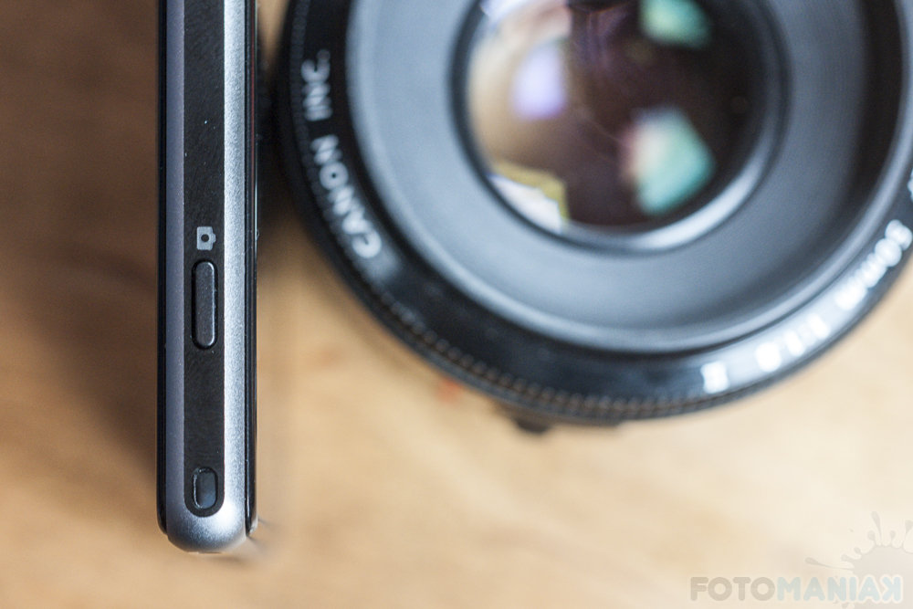 Wciśnięcie guzika do połowy uruchomi autofocus (możemy dotykowo wybierać punkt ostrzenia), który szybko ustali ostrość i pozwoli nam do końca wcisnąć przycisk, co zaskutkuje zwolnieniem elektronicznej migawki. Dłuższe przytrzymanie przycisku – nawet wtedy, gdy telefon jest zablokowany – przeniesie nas do aplikacji fotograficznej.