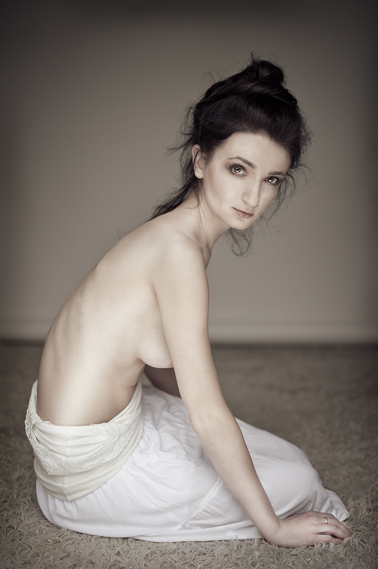 Podczas sesji najwięcej czasu poświęcam myśleniu. Oddaję się tej niecodziennej rozrywce z lubością i bestialsko przymuszam także moich modeli. Zazwyczaj z wymiernym skutkiem. W głowie mam efekt końcowy a drogę do niego odtwarzam niekiedy również od końca. I do kompletu w czasie rzeczywistym. Mam modelkę, dobieram pozę, dostosowuję światło, decyduję o kostiumie (lub jego braku), określam odległość od tła – cały czas bezczelnie i bezwstydnie myślę. Wtykam pod nos światłomierz, filtruję to moje myślenie przez oko obiektywu i koryguję. Tak! Koryguję! I to co najmniej kilka razy. Pstryk! I od nowa to samo! 15 minut pracy nad jednym ujęciem zatrzaśnięte w formacie 6×6 lub nawet 6×7. „Marnując czas” zyskuję czas. 2–3 godziny sesji owocuję 4–6 fotografiami, do mojego portfolio, do tego jest rezerwa w postaci ok. 20 ujęć, których wstydzić się nie muszę i nie zamierzam. Oszczędność jest tym większa, że omija mnie konieczność wybierania z 300 klatek pozostawiając do dyspozycji jedynie ok. 30.