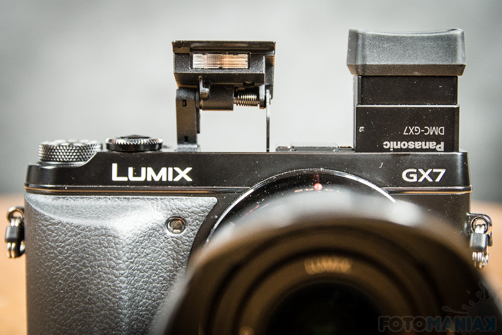 Przechodząc do wbudowanego w korpus flesza – lampa działa na zasadzie pop-up. Jest zwalniania przy pomocy skromnej dźwigienki umiejscowionej na tylnym panelu i oferuje liczbę przewodnią 5 dla ISO 100 (7 dla ISO 200). Nie jest to tak silny palnik, jak w – przykładowo – Sony NEX-6, ale do podstawowych zastosowań powinien wystarczyć. Zresztą, bardziej zaawansowani użytkownicy i tak sięgną po lampę mocowaną na gorącej stopce (z dedykowanych rozwiązań Panasonica mamy do wyboru m.in. modele FL220E, FL360LE i FL500E).