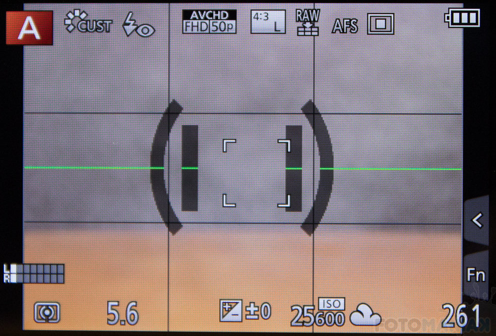 Wizjer, co ciekawe, również można zostać „podniesiony” – przypomina to nieco fotografowanie przez średnioformatowe kominki lub dokupowane oddzielnie, kątowe OVF-y. Sporym plusem jest też unikalny stosunek boków, optymalizowany pod kątem nagrywania wideo. Dostajemy tu bowiem nie tylko rozdzielczość 2,7 mln punktów, ale też typowo filmowy kadr 16:9 (jak w „filmowym” GH3). Jeśli więc zrezygnujemy z natywnego dla matryc Mikro Cztery Trzecie formatu 4:3 i zaryzykujemy z bardziej panoramicznym obrazem, będziemy zachwyceni wielkością i jasnością wyświetlanego obrazu. Samo 4:3 nie prezentuje się już tak rewelacyjnie; czarne paski po bokach potrafią być irytujące.