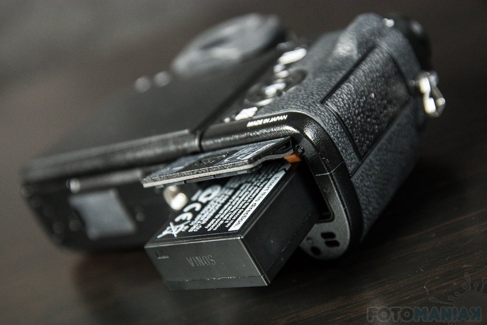 Na lewym boku producent ukrył gniazdo kart SD/SDHC/SDXC. Fujifilm X-T1 jest przy tym pierwszym aparatem cyfrowym, który wspiera szybki standard UHS-II (co jest o tyle ciekawe, że procesor obrazu to dokładnie ta sama jednostka, którą znajdziemy w X100S i X-E2. Z prawej strony, pod specjalnie wzmacnianą, gumową osłonką, zauważymy gniazdo mikrofonowe, złącza Mini HDMI oraz Micro USB. Został nam jeszcze dolny panel, gdzie Japończycy zmieścili baterię NP-W126; głodnym energii polecamy też opcjonalny uchwyt pionowy, mieszczący dodatkowy akumulator.